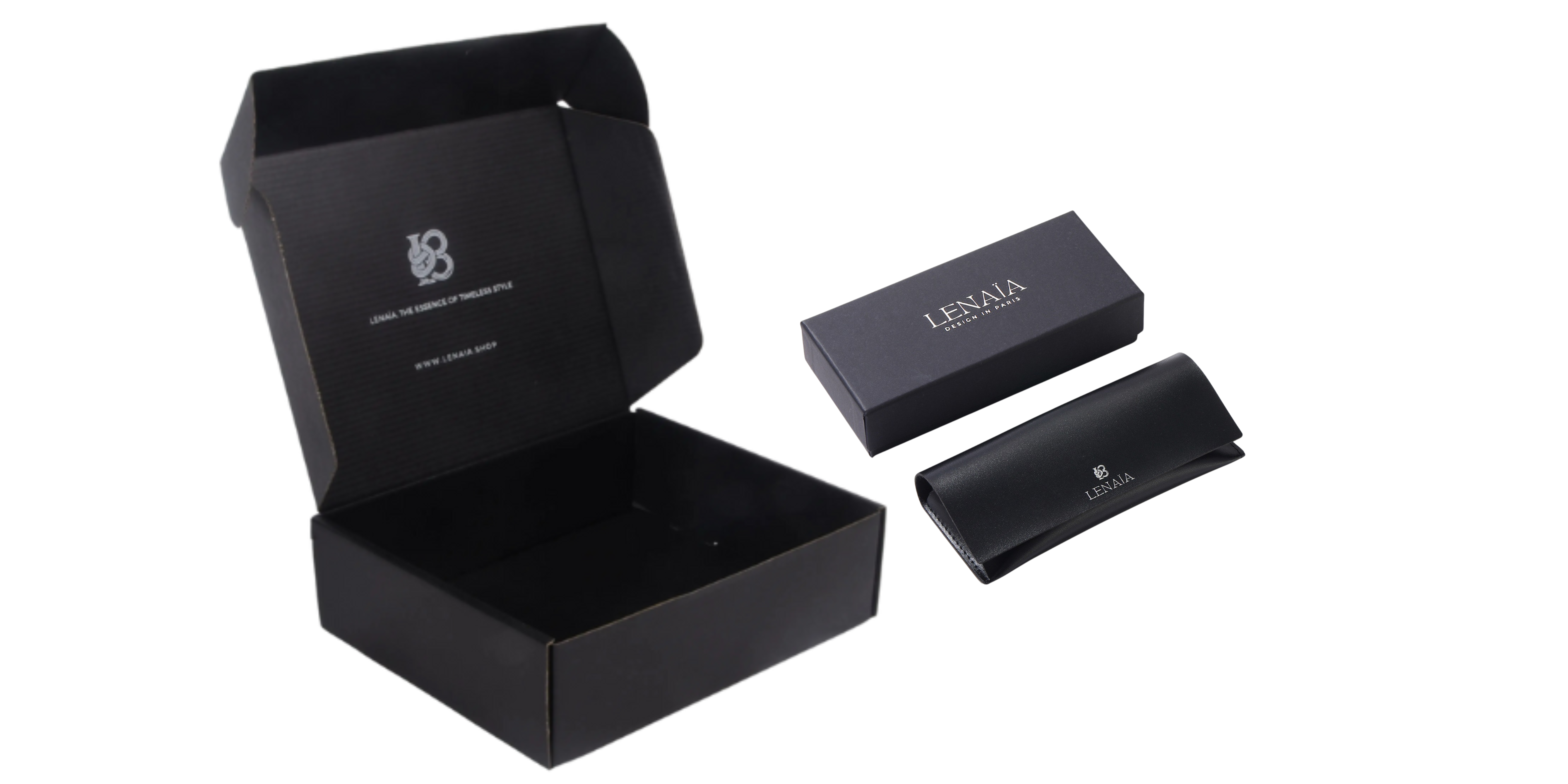 Chaque paire de lunettes de soleil est soigneusement protégée dans une pochette accompagnée d'un tissu de nettoyage. Ensuite, chaque pochette est emballée individuellement dans une boîte de protection. Une boîte de transport Lenaïa contiendra l'ensemble de votre commande.